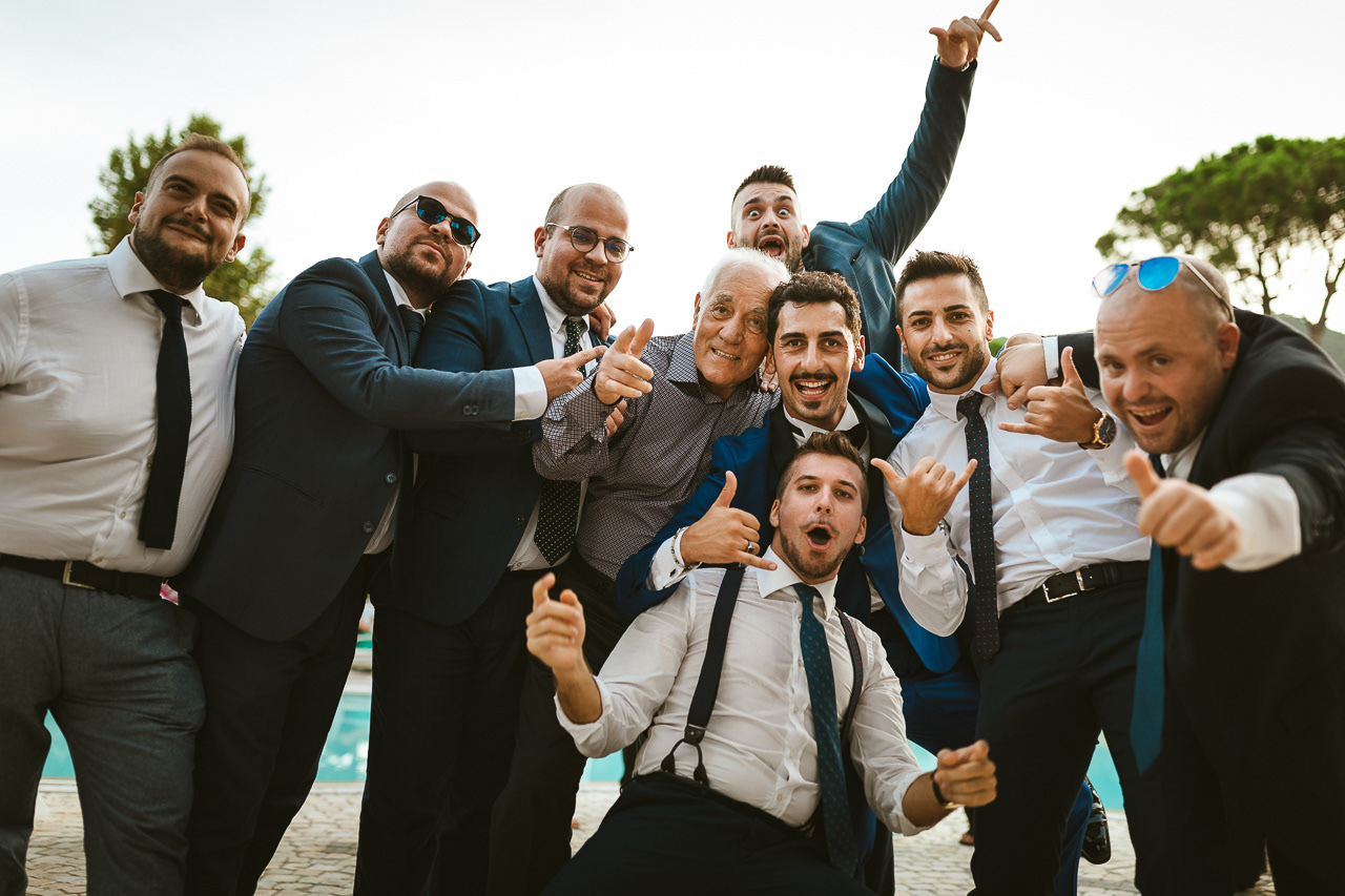 Quando la coppia e gli amici si divertono durante il ricevimento è un piacere documentare tutto, anche a bordo piscina... ma per fortuna un'invitata mi ha preso per la camicia prima che cadessi in acqua!
